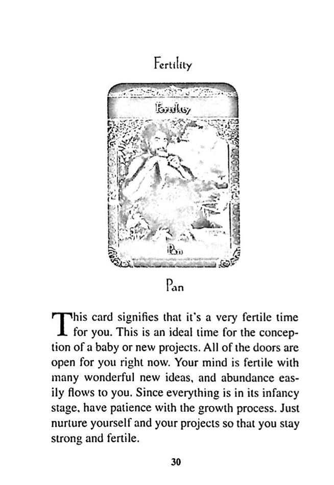 This card signifies that it's a very fertile time for you. This is an ideal time for the conception of a baby or new projects. All of the doors are open for you right now. Your mind is fertile with many wonderful new ideas, and abundance easily flows to you. Since everything is in its infancy stage, have patience with the growth process. Just nurture yourself and your projects so that you stay strong and fertile.