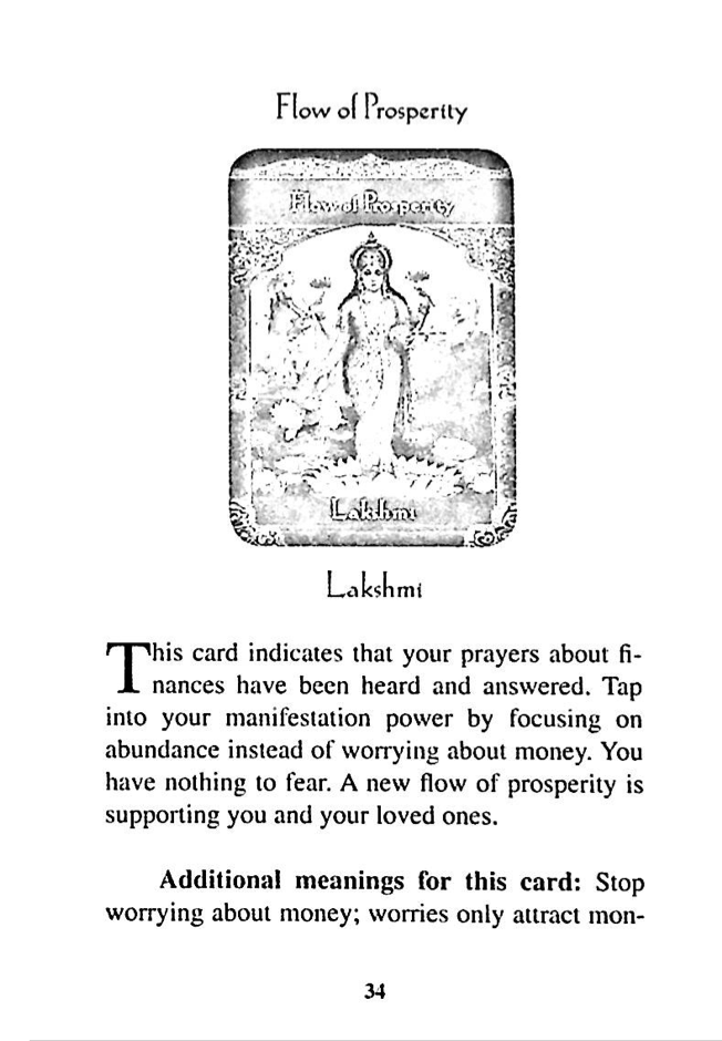 Lakshmi is the Hindu goddess of prosperity who helps us overcome financial fears and tap into the river of abundance that’s available to everyone. It’s helpful to put a statue or painting of Lakshmi in the financial corner (according to feng shui principles, this is the left rear corner of your home or office as you stand looking inward from the front door). Call upon Lakshmi to help transmute money worries into financial flow.