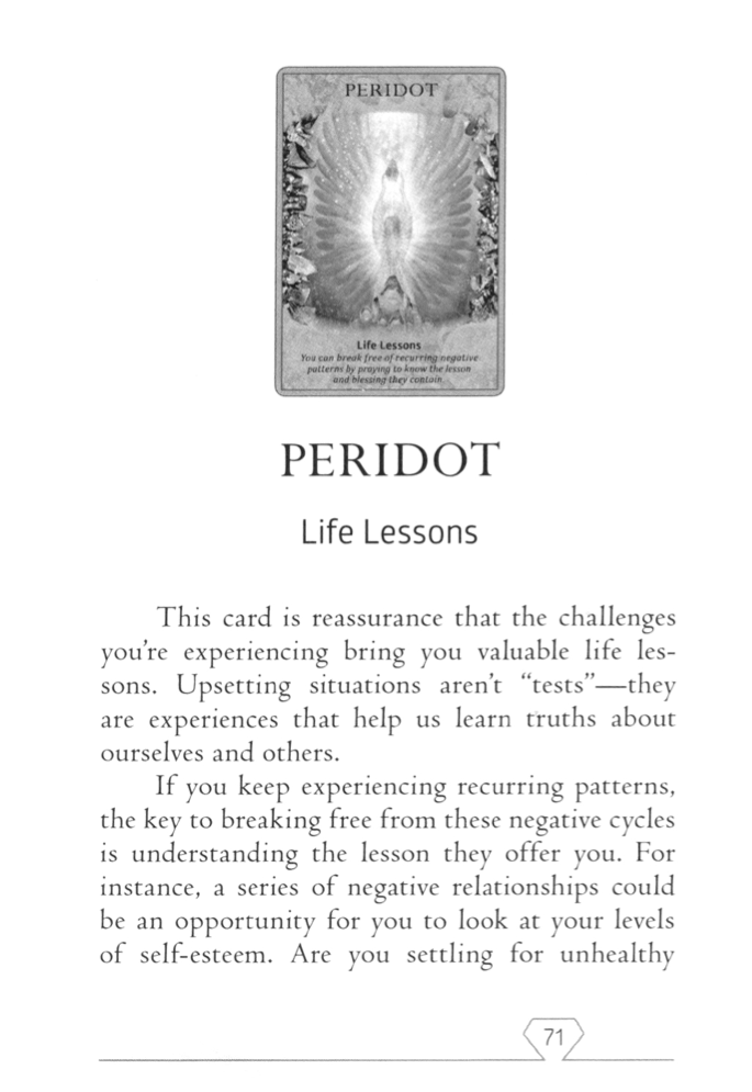 This card is reassurance that the challenges you're experiencing bring you valuable life lessons. Upsetting situations aren't 'tests'—they are experiences that help us learn truths about ourselves and others.