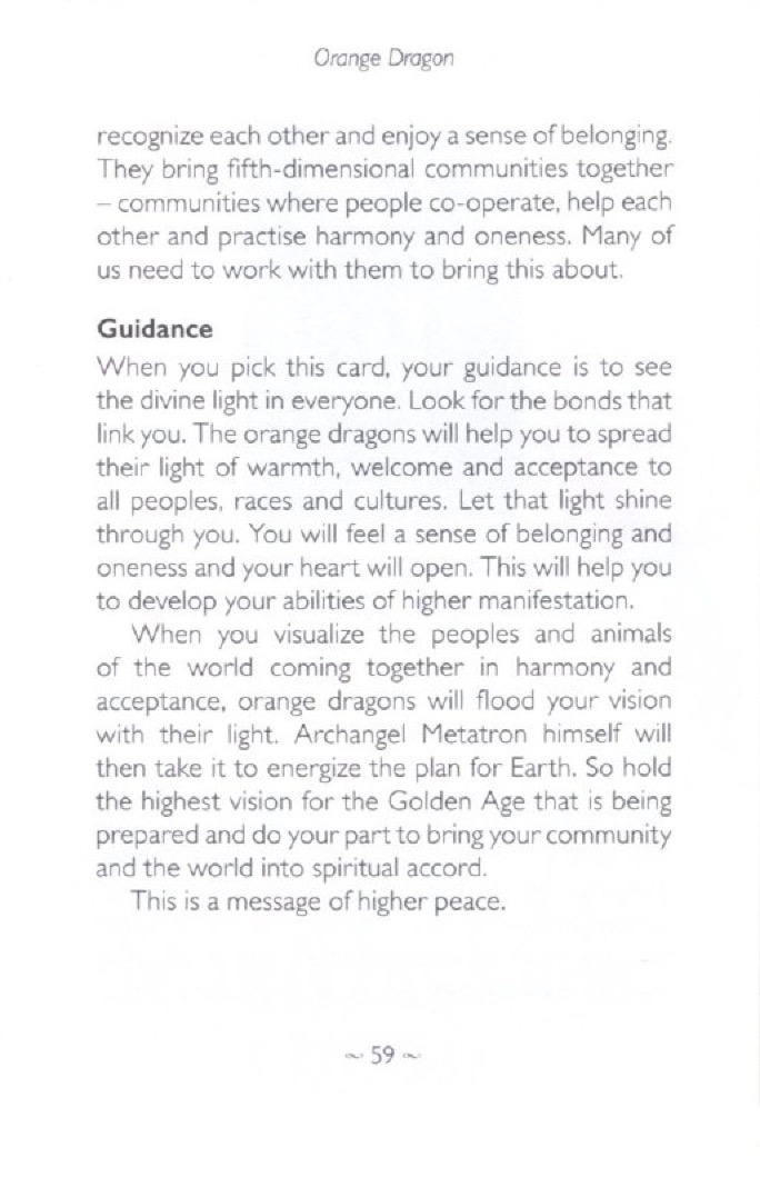 이 카드의 지침은 딥 블루 드래곤들에게 당신이나 사랑하는 사람들을 보호해 달라고 요청하는 것입니다. 걸어가거나 운전하는 길 어디든 자신 앞에서 유영하는 보호의 딥 블루 드래곤 군대를 시각화해보세요. 그들이 당신의 집이나 사무실로 앞서 들어가게 하세요. 그들이 집 아래 땅으로 깊이 잠수하여 모든 낮은 에너지를 흡수하게 요청하세요. 당신 주변 1킬로미터 내 완전히 깨끗한 영역을 유지하도록 부탁하세요. 이러한 일이 실제로 이루어지고 있음을 믿고 안심하세요. 딥 블루 드래곤들이 주변 사람들의 낮은 감정을 변환시켜주기 때문에 이제 더 이상 다른 이들의 무거운 에너지를 뚫고 나아갈 필요가 없습니다. 얼마나 가볍고 행복한지 느껴보세요. 딥 블루 드래곤들에게 쇼핑몰, 학교, 큰 건물, 혹은 그들이 필요하다고 느끼는 곳 어디든 잠수하여 복잡한 진동을 소멸시켜달라고 요청함으로써 이 행성에 기여할 수 있습니다.