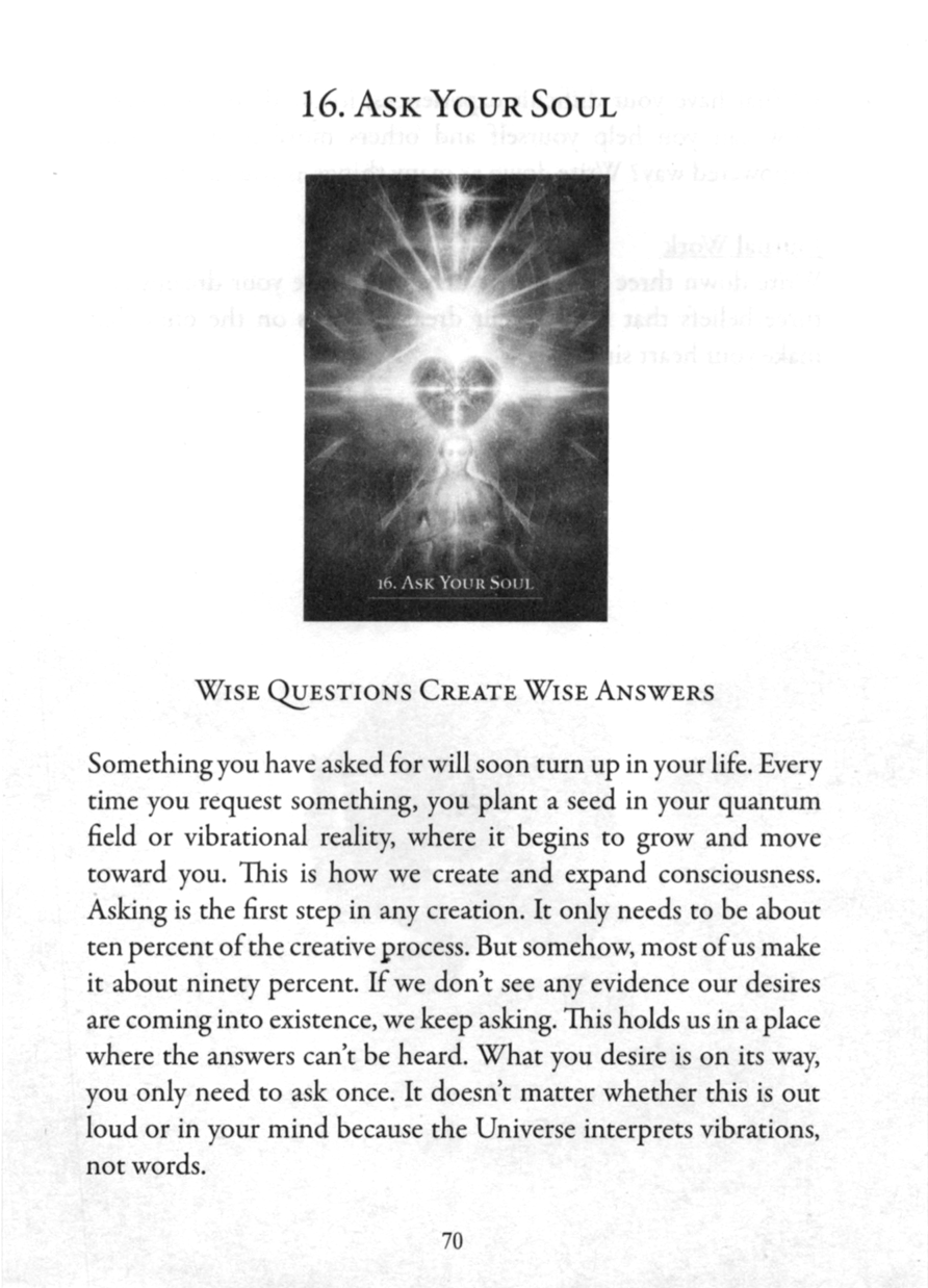 현명한 질문이 현명한 답을 이끕니다. 당신이 오래도록 바라던 어떤 것이 머지않아 당신의 삶에 나타날 것입니다. 우리가 무언가를 요청할 때마다, 우리는 양자장 혹은 진동하는 현실 속에 씨앗을 심어 그 씨앗이 자라며 당신에게 다가오기 시작합니다.
