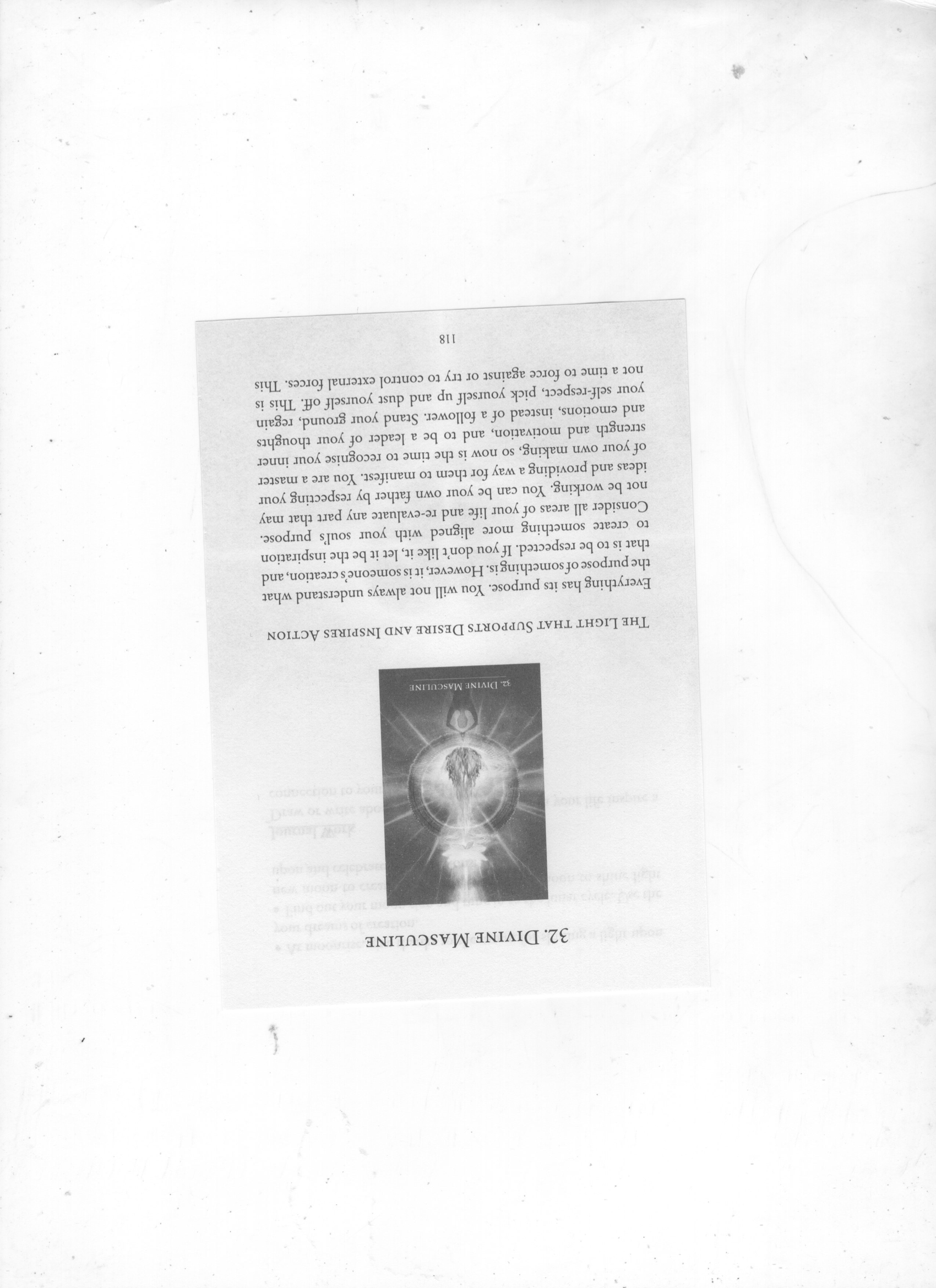 The light that supports desire and inspires action. Everything has its purpose. You will feel clearer about what this purpose is to respect and understand. It is to let go of the inspiration to create something from external forces.