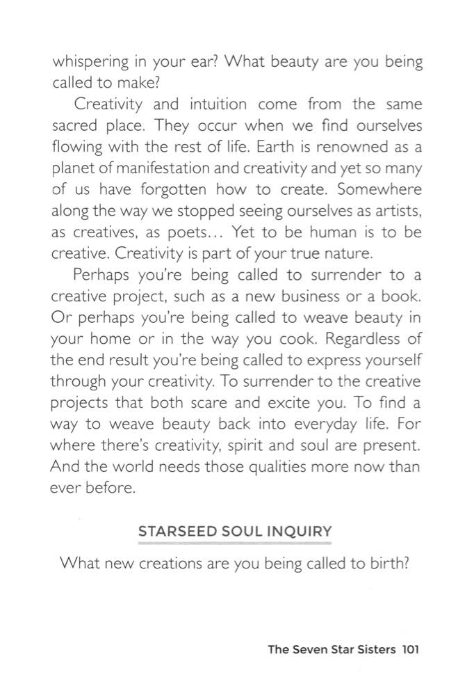 You're being invited to step into your ancient knowingness. To be held by the rememberings of the star ancestors. To look a little deeper. If you're feeling stuck, you're being called to do something different – to change your point of view. Creativity happens when we put together two things that don't belong. When we do the unexpected. So often a creative solution is right in front of us, but because we think the same thoughts and act the same way, we miss what's in the open.