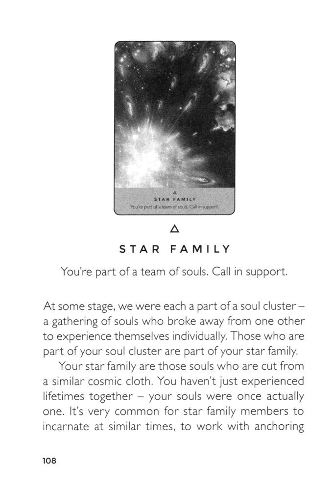어느 시점에서 우리 각자는 하나의 영혼 집단에 속해 있었습니다. 서로에게서 떨어져 나와 개별적인 존재를 경험하기 위해 모인 영혼의 모임이죠. 당신의 영혼 집단에 속한 이들이 바로 당신의 별의 가족입니다.